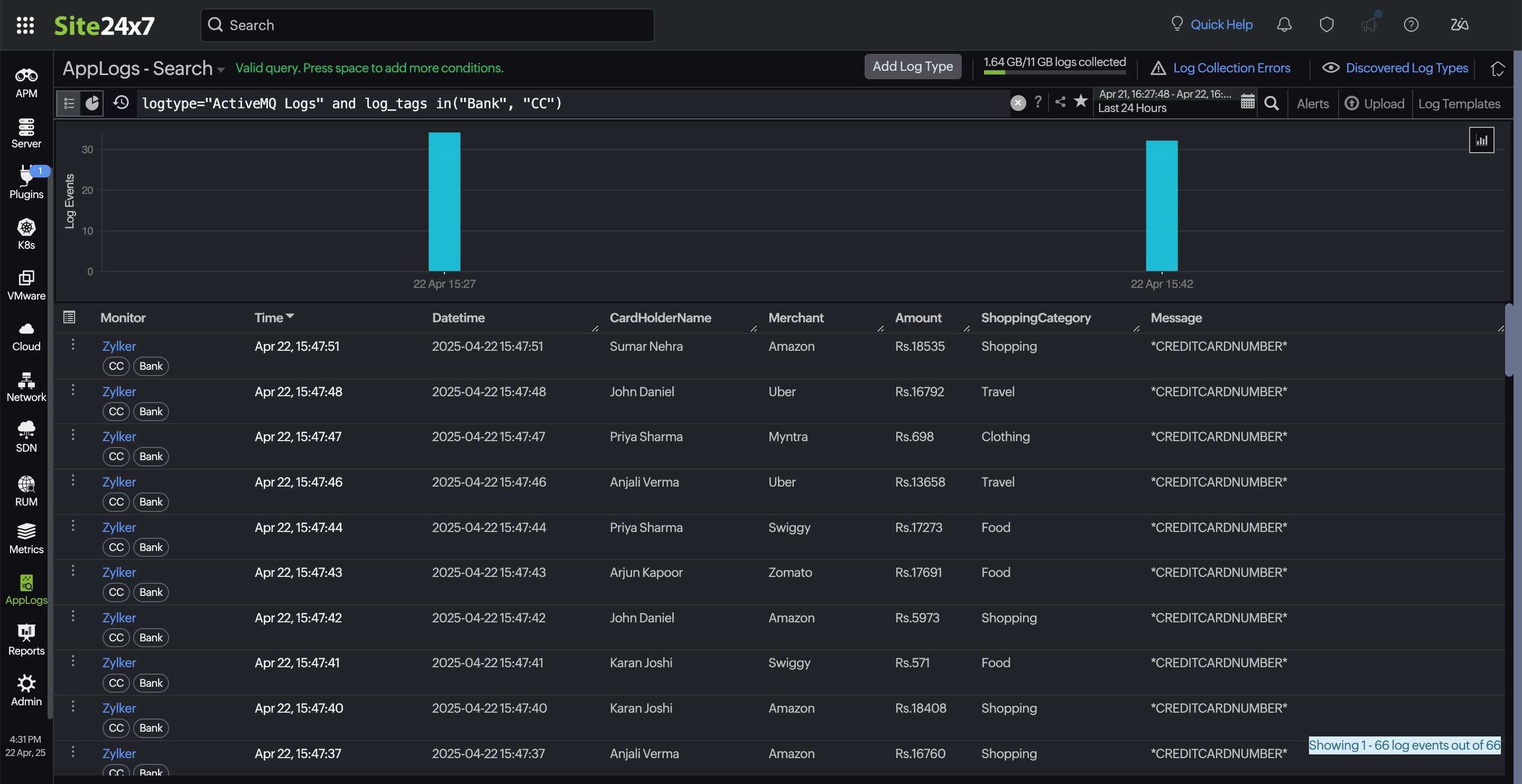 When sensitive PII data is exposed in logs, Site24x7’s log management solution automatically protects it through its log tagging feature.