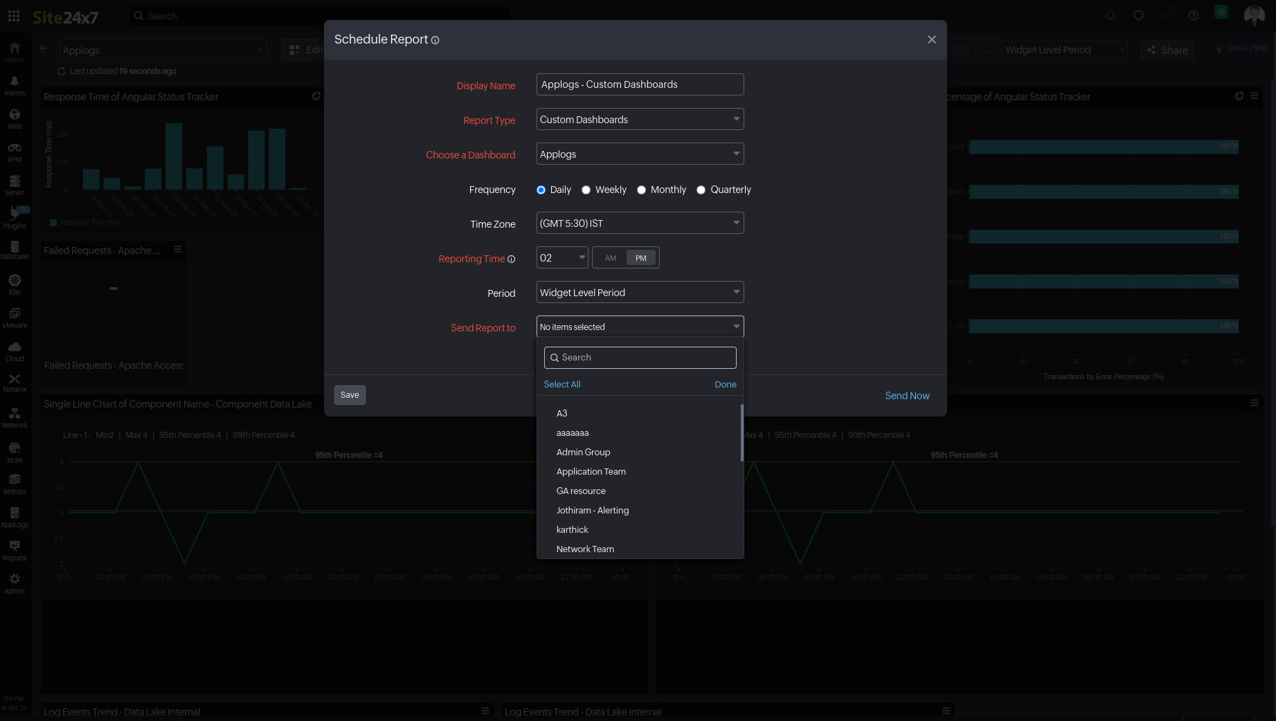 - Schedule dashboard updates: Stay informed with updates from your custom dashboards. Ensure you have the latest monitoring insights delivered to your email inbox as a PDF, scheduled whenever you need them.