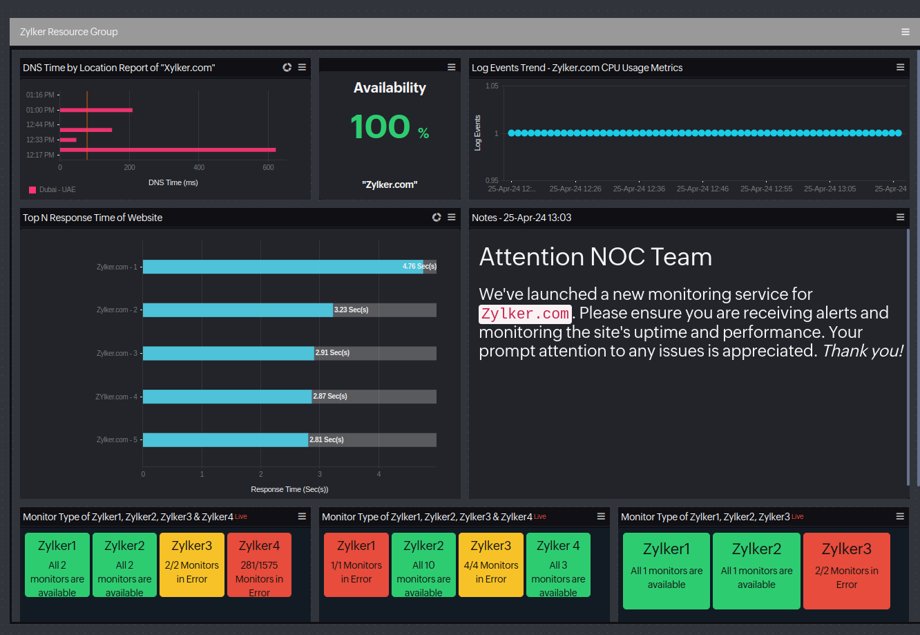 - Auto-arrange widgets for optimal layout: Let Site24x7 optimize the layout for you! With the Auto-Arrange feature, your widgets will be automatically positioned for optimal visibility and usability, saving you time and ensuring a polished dashboard layout.