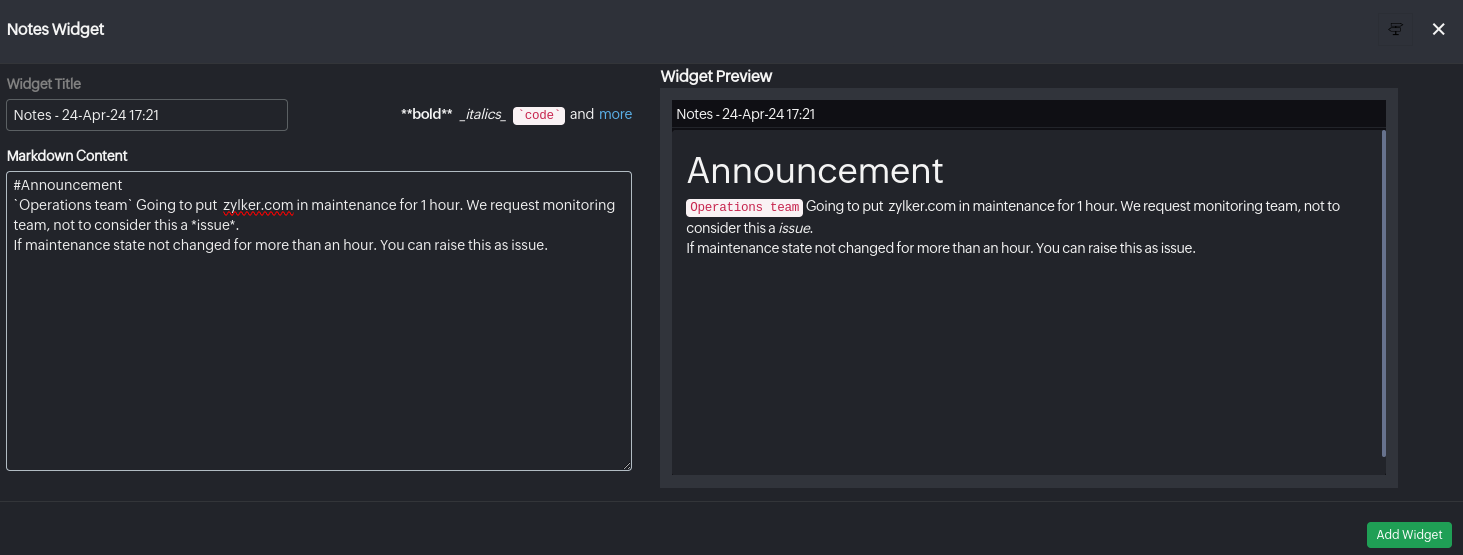 - Share notes for seamless communication across teams: Foster collaboration and streamline communication within your organization by adding important information to your dashboards with the Notes Widget. Share important insights, updates, or instructions with your team members right where they need them.