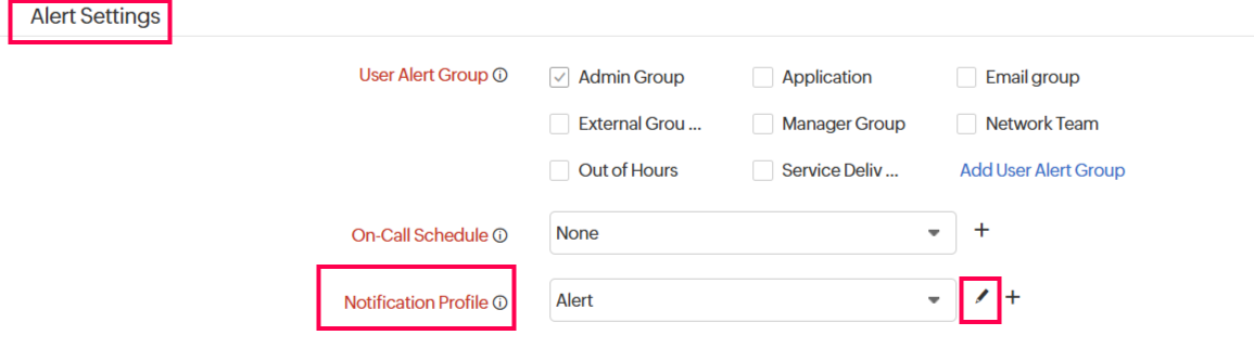 2. Scroll down to the "Alert Settings" section and from the "Notification Profile" option, click the edit icon