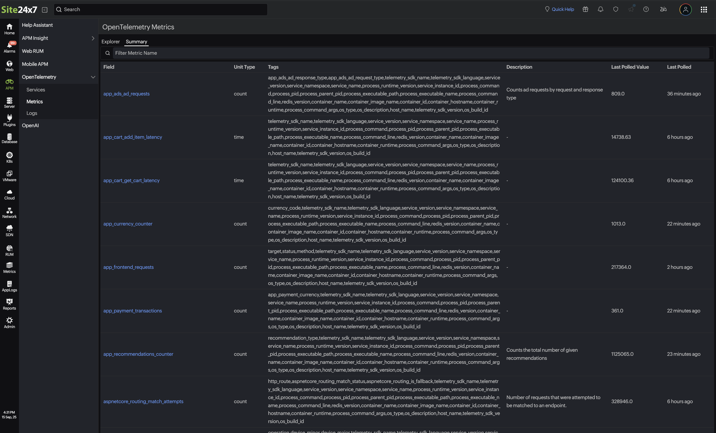 [New Features] Gain Deeper Visibility Into Application Performance by Tracking OpenTelemetry Metrics and Logs in Site24x7